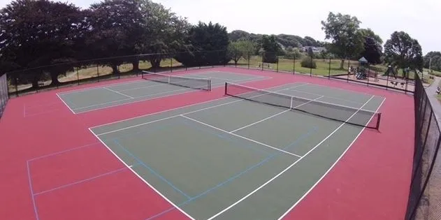 2 Tennis Courts lined for 4 pickleball – Bring your own nets. Courts are open to the public year-round but may occasionally be reserved for lessons and league play. Check signage at the courts.